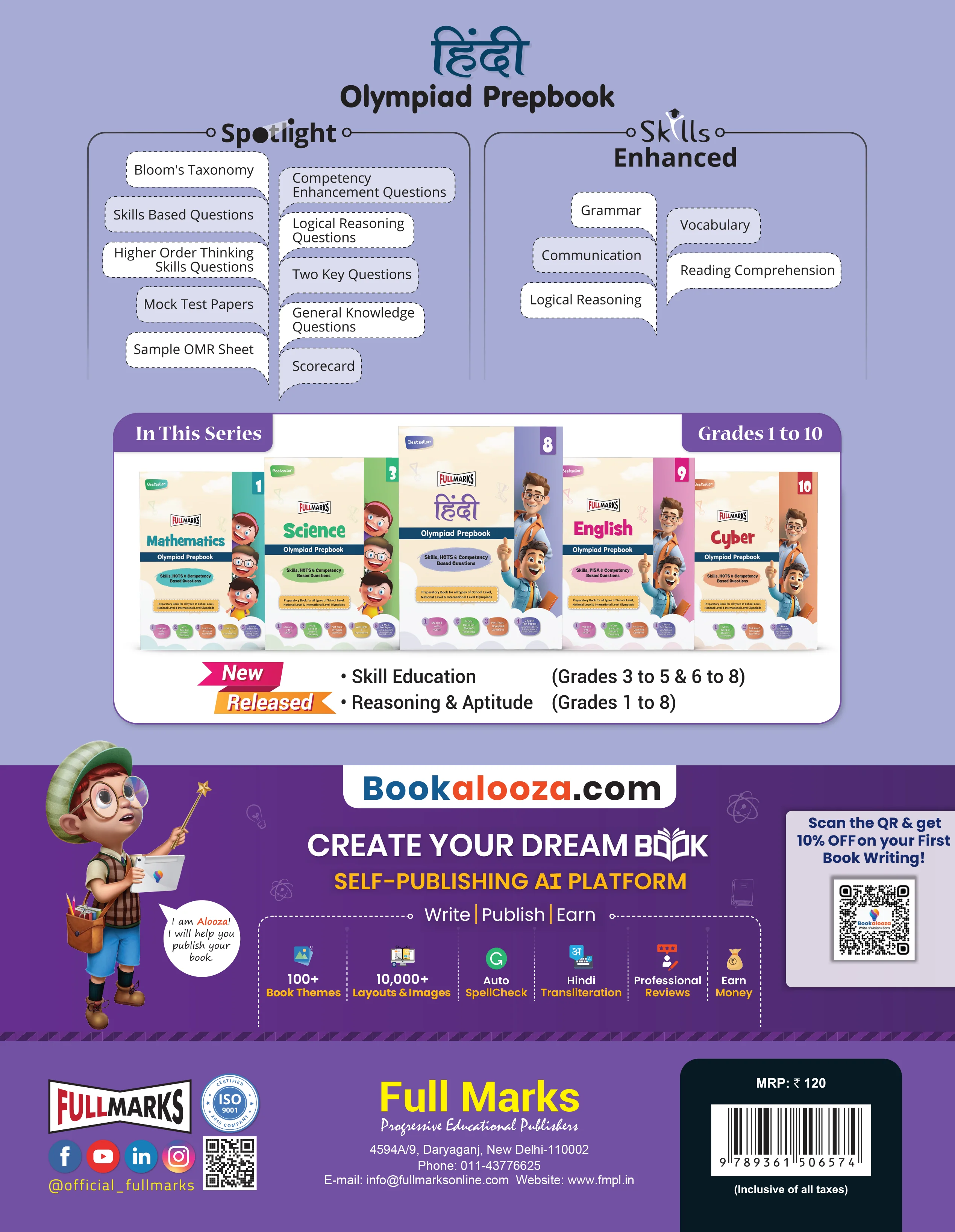 Full Marks Hindi Olympiad Class 8 Prepbook / Guide with Competency-Based Questions, Skills Based Questions Mock Test Papers, and OMR Sheets for 2025 Exams